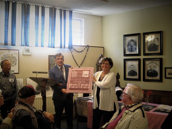 Voorzitter Henk Hellegers van Brabants Heem heeft zaterdag 29 september de geweven doek van Brabants heem uitgereikt aan voorzitter Annemieke de Groot van de Heemkundekring Uden. Hij deed dat ter gelegenheid van de open dag die de kring hield om haar 60-jarig bestaan te vieren.