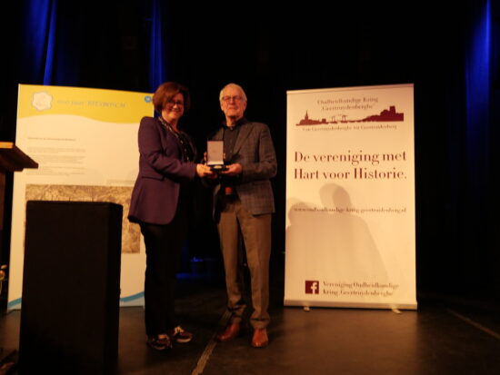 De feestelijke viering van het vijftig jarig bestaan van oudheidkundige vereniging Geertruidenberghe kreeg op 12 november een koninklijk tintje. Burgemeester Marian Witte van Geertruidenberg reikte de vereniging de Koninklijke Erepenning uit. Geertruidenberghe ontvangt deze onderscheiding als een vorm van Koninklijke waardering voor de bijzondere wijze waarop al vijftig jaar de geschiedenis van Geertruidenberg, Raamsdonk en Raamsdonksveer uitgedragen wordt. De 89 jarige Bas Zijlmans mocht als mede-oprichter en eerste voorzitter van de vereniging de penning in ontvangst nemen. Hierna was er ook nog eens Koninklijke waardering voor de waarnemend voorzitter John François, die de versierselen bij de Koninklijke Onderscheiding tot lid in de orde van Oranje Nassau opgespeld kreeg. John is als vrijwilliger al vele jaren actief binnen de vereniging en binnen de gemeenschap van Geertruidenberg