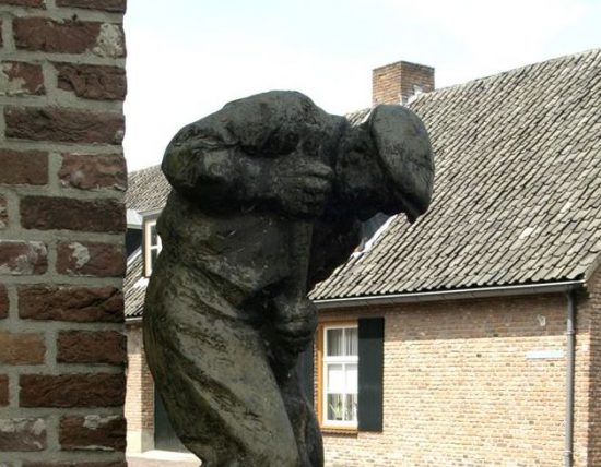 Bij de foto: beeld Nillis de Klompenmaker Foto collectie Stichting Kèk Liemt.