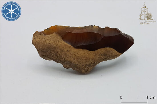 Foto: Vondst ‘Beksteker’ op De Roosakker – gehucht Kasteren 04.10.2020. (foto collectie Erfgoedvereniging Kèk Liemt)