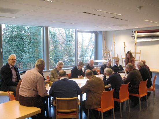 In kleinere groepen is daarna gesproken over een aantal stellingen. Op flapovers werden de antwoord in de zaal opgehangen en toegelicht. Een rijke oogst leverde dat op met veel aanbevelingen en veel suggesties. En dat alles verliep in een strak tijdschema, want even na vijven kon de (korte) vergadering van de Raad van Aangeslotenen beginnen en een half uur later zaten de deelnemers aan de gezamenlijke koffietafel.