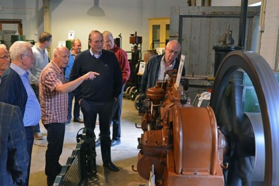 In een ontvangstruimte worden gasten geïnformeerd over de technische evolutie in de vorige eeuw.