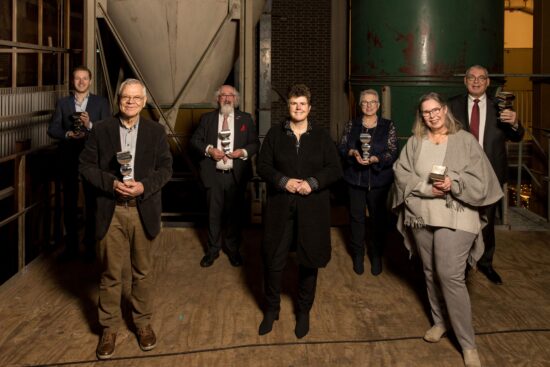Foto boven: De laureaten v.l.n.r.: Pieter van den Broek, Jacques Rovers, Tony Vaessen, Ina Adema (commissaris van de koning), Ineke Strouken, Liesbeth Schreuder en Jan van Eijck. (foto Marjo van de Peppel-Kool)